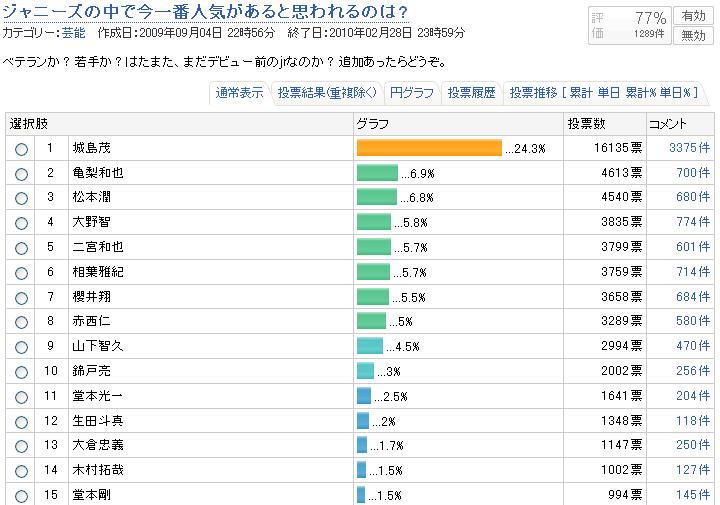ちょっと前までは松○ゅんがトップだったらしいし、